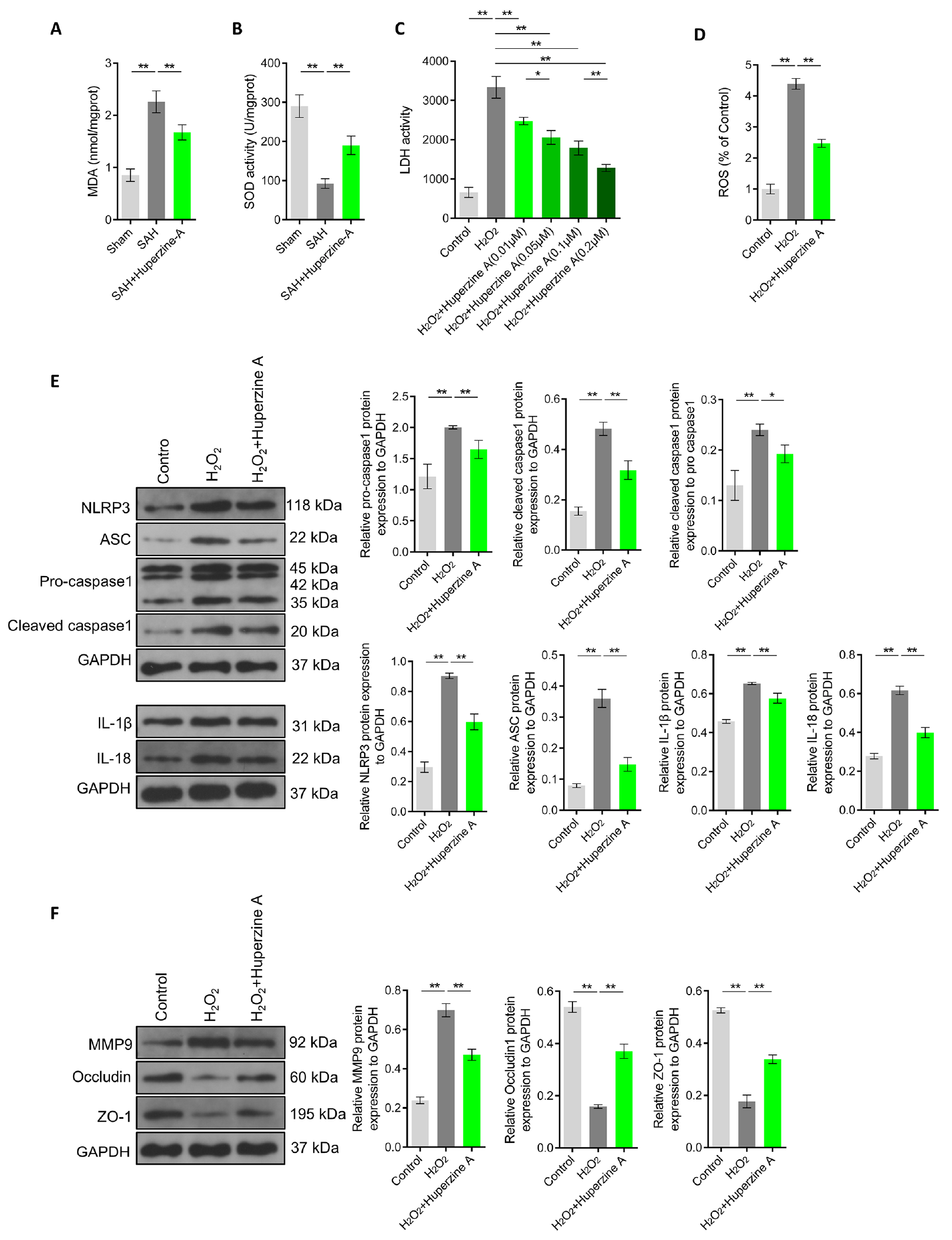 四、石杉碱甲改善了 SAH 大鼠脑组织的氧化应激,抑制了氧化应激介导的内皮细胞焦亡。