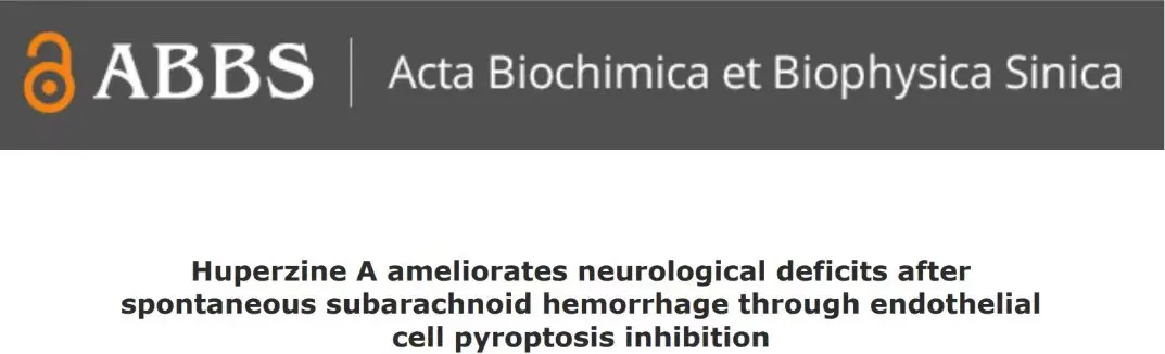 近期《Huperzine A ameliorates neurological deficits after spontaneous subarachnoid hemorrhage through endothelial cell pyroptosis inhibition》在 Acta Biochimica et Biophysica Sinica(生物化学与生物物理学报)发表。该研究由西湖大学医学院附属杭州市第一人民医院神经外科和体检中心团队完成。该研究表明,石杉碱甲注射液可抑制内皮细胞焦亡、抗氧化应激,改善蛛网膜下腔出血(SAH)后的早期脑损伤。