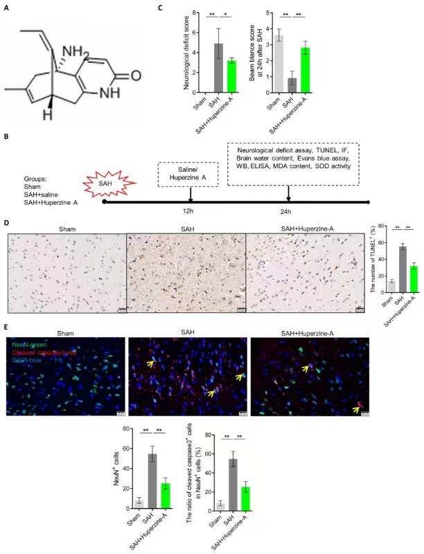 一、石杉碱甲改善 SAH 大鼠神经功能缺陷和脑组织神经元凋亡。