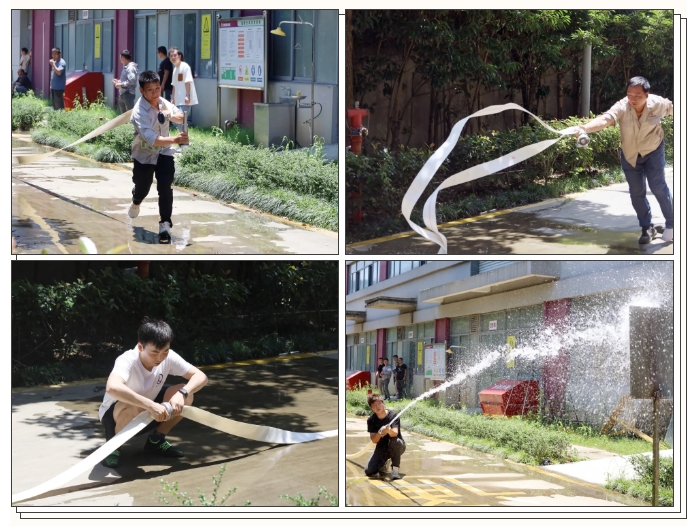 场上,队员们斗志昂扬、默契协作,一人拿起水带向靶区方向抛,并接好室外消火栓,另一人连接水带和水枪,两人互相配合出水打靶,充分展现了团队应急救援实战水平。