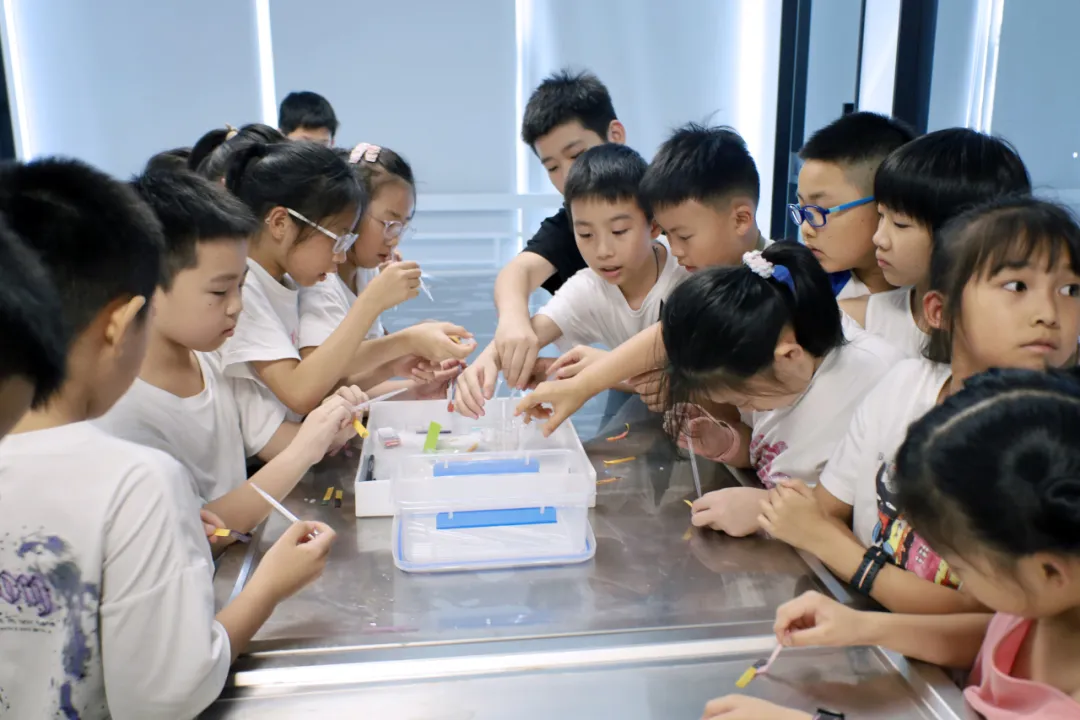 为了让同学们更加近距离感受和体验化学的魅力,随后,工作人员带领同学们开启了一场科普小课堂,通过沉浸式实验,让同学们更直观地学习关于溶液的酸碱度、PH值的知识。神奇的试纸变色现象,激发了同学们极大的兴趣和热情,“我知道,这个溶液是酸性的,因为石蕊试纸变红色了,变蓝色是碱性。”在动手实践中,同学们检验着自己的学习成果。