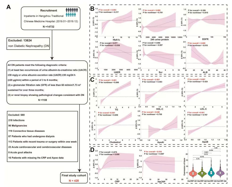 为探究ApoE与DN相关生物标志物的临床相关性,研究纳入了428例DN患者进行进一步分析。